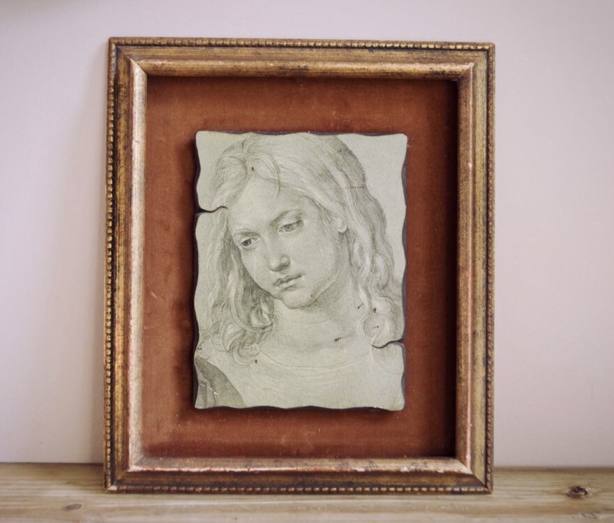 Vintage Framed Albrecht Durer Drawing On Wood Catalda Fine Arts Head Of Beauty Head Of Twelve Year Old Christ Religious Christian
