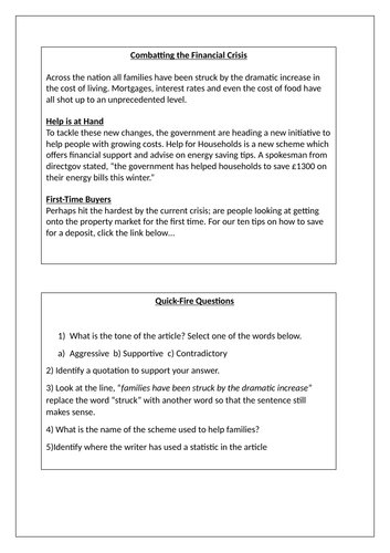 Functional Skills Cost Of Living Crisis Teaching Resources